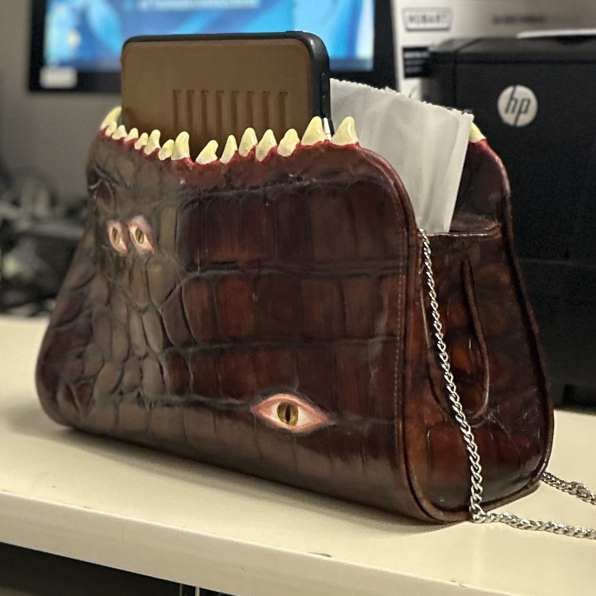 Because everything I’ve made up to this point has been done using lucky thrift store finds, every HM commission will be its own custom consultation. I don’t have items made in advance waiting to assemble the way I would like, but I am more than happy to procure what’s needed to bring your dream item to life. I’m even willing to work with a preexisting item you have, like a purse or jewelry or found object, if you’d like to send it to me. The address for shipping will be given at some point during the consultation.